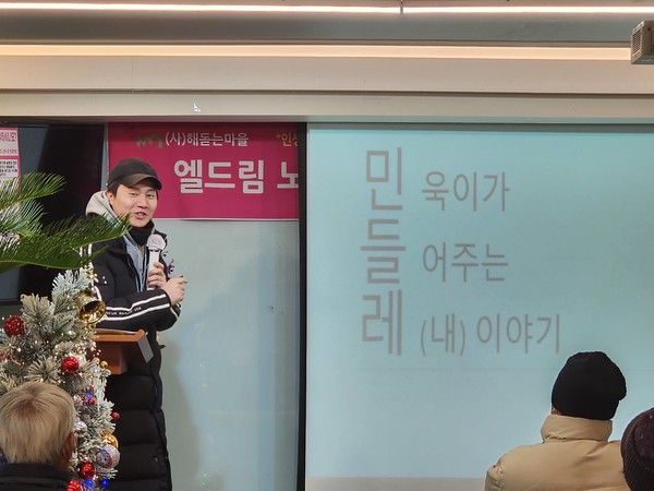 두 단체는 지난 28일 서울 엘드림노인대학에서 ‘민들레(민욱이가 들어주는 내 이야기) 토크쇼’ 첫 강의를 열고 지역사회 고독사 예방 사업의 닻을 올렸다.